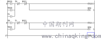 但是在写入真实的PLC中,却不能达到要求,实践中发现当T0常开触点还没接通Y21线圈时,其T0线圈先失电,最终不能让Y21线圈得电,其根本原因是跟PLC的扫描周期运行方式相关。所以仿真软件也不能模拟真实的情况,容易在教学中让学生产生误解。所以教学一定要在实际设备上进行验证。