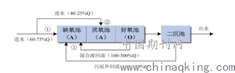 图1 倒置AAO生物脱氮除磷工艺流程图