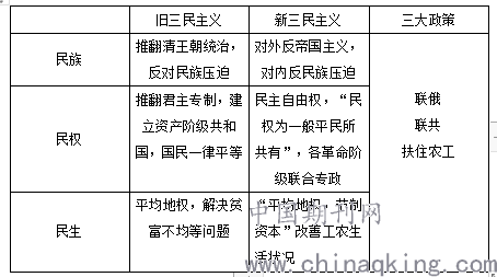 [点拨]正文中提到了中共三大和三民主义此时教师可以引导学生回忆中共一大、中共二大和旧三民主义的相关内容,便于把知识理成线,也有利于知识的迁移、巩固和理解。