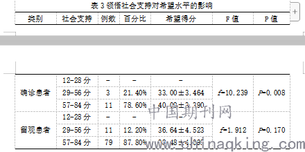 表3领悟社会支持对希望水平的影响