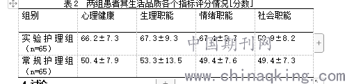 表2 两组患者其生活品质各个指标评分情况[分数]