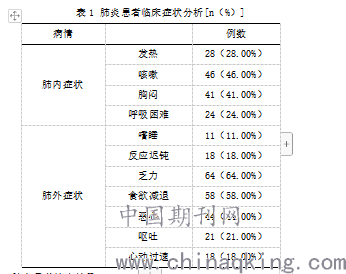 (1)分析肺炎患者主要临床症状。(2)分析肺炎患者治疗效果。