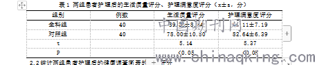 2.1统计两组患者护理后的生活质量评分、护理满意度评分