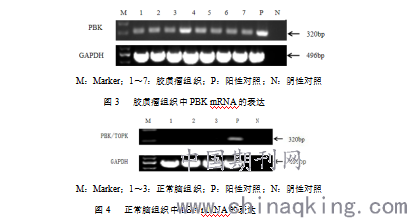 2.3RT-PCR检测PBK mRNA在胶质瘤组织及正常脑组织中的表达