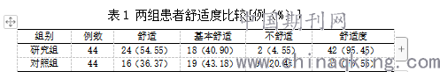 表1 两组患者舒适度比较[例(%)]