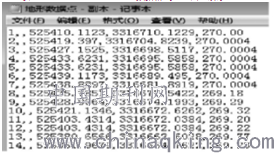 被上传到计算机当中的数据信息,有着其“*.dat”的扩展名,同时CASS软件主要需要[1.Y,X,H]的数据格式,如图1所示。