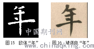 例如例字中的“年”(图15),结体笔画均十分到位美观,但学生并不能从着石刻的背后看透笔画的真谛。因此我找了另一件“帖字”中楷书的“年”(图16),让学生在掌握了欧体“年”的基础上尝试着写一写,由于笔画和结体上十分相近,所以学生写起来并不难,教师只需要提示学生观察笔画的细微变化即可。