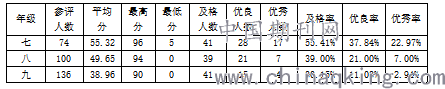 参与本次初中数学逻辑推理能力调查的共有6所学校,其中县城中学1所,农村中学5所,调查对象分为七八九三个年级的学生。针对三个年级学生的数学逻辑推理素养水平的现状,把被测试者的测试成绩作出详细分析,见下表