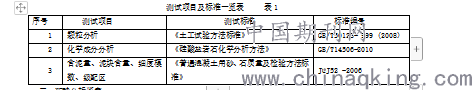 样品的测试、分析、鉴定委托检测中心完成,该单位需具备国土资源部颁发的地质实验测试(岩矿测试、岩土试验)甲级资质。测试项目和标准见下表 :
