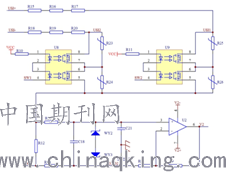 本设计选用型号为AQW214的半导体继电器作为乒乓切换电路的电子开关,如图3中U8、U9所示,AQW214闭路时的偏置电压极低可以对微小模拟信号进行控制,当负载为400V时,其开路电流只有100pA,同时该器件能以5mA的输入电路进行0.13A的负载电流控制,动作时间仅为310μs,具有高灵敏度和高响应速度,而且AQW214输入部为LED驱动电路简单,不会产生对驱动器产生破坏的“逆电压”不需要二极管保护电路,不需要MOS功率驱动电源,系统直接通过CPU口线进行控制,大大的简化了电路设计。