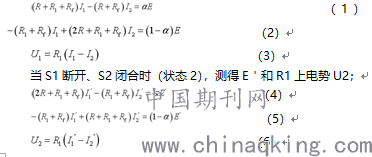 当S1闭合、S2断开时(状态1),测得E和R1上电势U1;