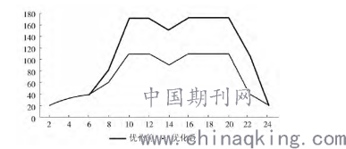 遗传算法在应用时首先应该构建模型,并对问题对象进行编码控制,接下来便是进行初始化种群、个体计算适应值。在遗传算法中通过执行选择、较差、变异等多种操作后,判断是否终止程序运行。如果条件满足终止条件则终止结束,否则继续按照程序流程计算。智能楼宇通信自动化系统的网络通信通常使用MATLAB仿真软件,然后在仿真软件中应用遗传算法。通过遗传算法对智能楼宇通信自动化系统的接入设备进行指令处理和设计规划。例如,通过智能楼宇通信自动化系统可以有效控制接入系统的家用电器设备,业主通过智能楼宇APP程序实现对家用电器的智能控制,能够有效降低电器的功耗,节省业主的用电成本。图3为某智能楼宇通信自动化系统的家用电器功耗优化图。