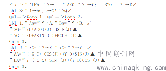 为避免使用繁琐的数学公式使计算更加便捷且不易出错,近来从事测量工作的大部分人员,在工程中集合传统的计算公式所采用CASIOfx-4500p、CASIOfx-5800p等可编程计算器把计算过程简单化,操作便捷,效率高。