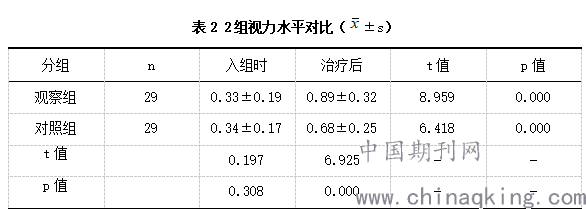2组患者治疗前均较低P>0.05,治疗后观察组的高于对照组,P<0.05。
