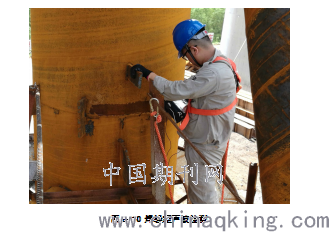 焊缝完成后进行焊缝外观检测,焊缝表面无气孔、裂纹、夹渣、凹陷等缺陷及熔合性飞溅;外观检验合格后进行超声波探伤检测,焊缝质量达到二级焊缝质量标准。