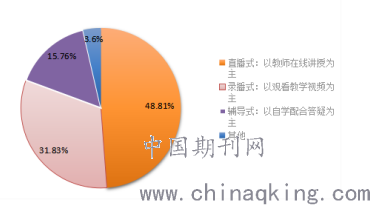 如上图所示,在对大学生思政课线上学习状况的调查中问及学生:“你认为哪种线上教学模式的效果更好?”其中,48.81%的同学选择直播式,以教师在线讲授为主。31.83%的学生选择录播式,以观看教学视频为主。15.76%的同学选择辅导式,以自学配合答疑为主。还有3.6%的同学选择其他。由此可见,大部分同学喜欢以直播为主的授课方式。直播的教学方式对网速以及学生的参与度、注意力等要求较高,所以直播的时间不宜过长。思政课教学可采用混合式线上教学方式,如:精品课程/录播视频+直播指导/直播互动/直播答疑,单纯地直播或者学生观看网络视频,学生的参与感不强,不利于调动他们学习的积极性与主动性,而混合式线上教学方式既有效整合线上资源,又守护了学生的主体地位。