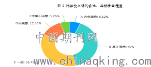 体育器材是学校正常开展体育教学和训练不可缺少的基本条件,也是学生身体锻炼和体育技能获得的物质保证,教育部颁发的《中学体育器材设施配备目录》对学校的体育器材配备和规格做了具体的规定。通过问卷调查以及访问,在体育器材的使用上,虽然调查高一学生,但学校是具备开展三大球 (篮、排、足) 、两小球 (羽毛球、乒乓球) 、田径等的基本项目的器材,但大多数器材比较破旧,在体育课教学当中利用率很低。例如篮球课,篮球的数量足够学生两人一球进行教学训练,但由于80%的篮球都已经破损或陈旧,结果出现五、六个人用一个较新篮球的现象,严重影响了教学质量; 此外,由图2可知,有12.63%的学生对我们的体育场地和器材是不满意的,5.26%的同学对学校的场地器材非常不满意,而对学校场地器材满意的只占40%。因此,学校不完善的场地和破旧器材很大程度上影响了学生对体育的兴趣。目前学校都没有专门的器材管理员,体育老师负责每次器材的清收与管理。但出现一个问题,器材钥匙放在门口门卫,其他老师同学都可以随时拿取器材,体育器材常常因得不到较好的保管而受到损坏,甚至丢失。