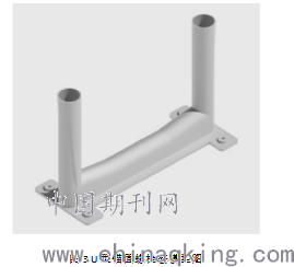 用于固定锚固螺栓的U型锚固螺栓套,一般采用PVC塑料材料一次性加工成型,根据结构楼板的厚度确定U型锚固螺栓套的高度。U型锚固螺栓套提前绘制图纸(见图2),绘制U型锚固螺栓套模型图(如图3所示)由模具制造厂统一加工制作。螺栓套材料的选择,必须有一定的强度与刚度,能利于螺杆安装在模板上,不破坏模板;有较强的抵抗混凝土的冲击能力。工字钢拆除后,确保螺栓能快速拆除,并且修补阶段也快速、有效、低成本。