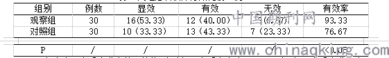 2.1两组患者临床疗效比较 实验组和对照组患者临床有效率分别为93.33%和76.67%,差异明显具有统计学意义(P<0.05),详见表1。
