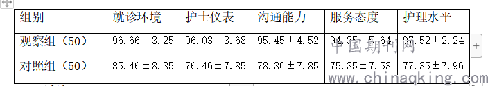 2.2 两组患者各项临床护理服务满意度评分比较。观察组的就诊环境、护士仪表、沟通能力、服务态度、护理水平等满意度评分,均显著高于对照组,组间差异显著P<0.05。具体数据见表2。