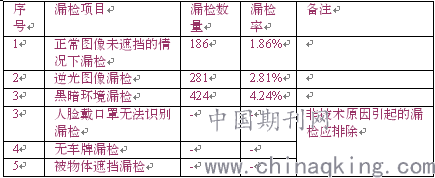 从表中可以看出,非技术原因引起的漏检不属于本实验考虑范围,排除非技术因素后,漏检率为8.91%,远小于20%。