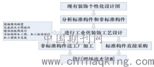 传统的手工操作工艺将逐步被淘汰,取而代之的将是“工业化的生产施工”,装配式施工就是其中的一种。工业化的生产施工,是指摒弃传统装饰技术存在的弊端,利用科学的管理手段,对建筑装饰做出定量、定性的分析,通过装饰工艺设计转化为可以在工厂加工的构件,使所有装饰构件均在工厂加工,半成品运抵现场,到现场后进行拼装施工,具体如图1所示。