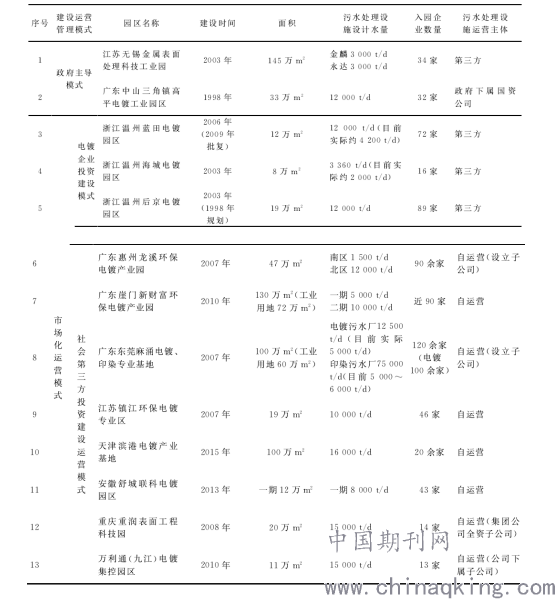 1.我国电镀工业园区建设、运营及环境管理的主要模式