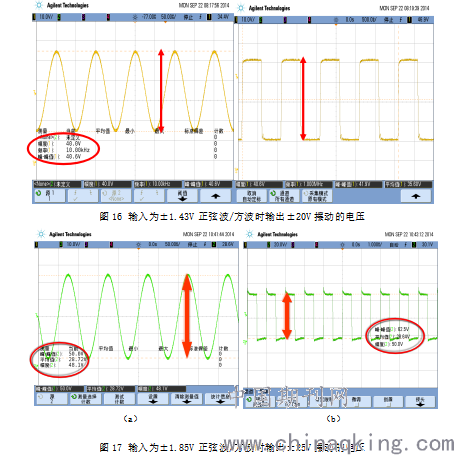 由仿真的波形,我们可以看出:电路能够将小的输入电流信号,经过电路的放大,转换成大的电压信号来驱动CRT监视器。当输入的电压为±1.85V,输入的电流为±9.3mA时,电路能够获得±25V的输出电压摆动。波形正常不失真,满足技术指标内容。