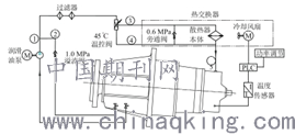 齿轮箱箱体表面的散热量非常有限,可以用润滑油循环系统来吸收多余的热量。如果不考虑润滑油在循环管道中散失的热量,假设冷却后的润滑油与外部环境等温,则冷却系统的散热量等于润滑油的吸热量。