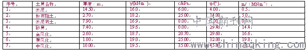 珠海某国际大厦项目位于珠海市横琴的十字门中央商务核心区,地面层数为26层,高度为120m,占地面积约为14310m2,可以引入摩天大楼墙之类的结构。大楼的内撑式支护结构指定地下室,总面积约为7971.2m2。本项目基坑采用桩+混凝土内支撑支护型式,基坑开挖深度约18.6m。该内撑式支护的一种现场视图是沿海平原。表1显示了各层的物理力学参数