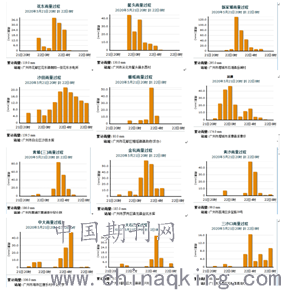 2020年5月21日20时至22日8时广州市部分站点累积降水量如图1.2所示,选取部分站点(图1.3)对本次降雨过程的时空分布进行分析。