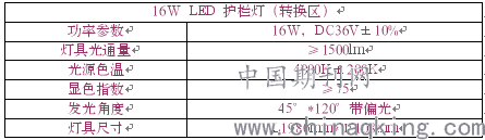 在转换区桥梁防撞墙两侧设置灯具参数见表1所示。