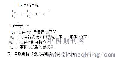 对于选定的电容器,其容抗是定值,根据电容器额定参数和串入电抗器后电容器的端电压变化,我们可以推导出电容器的实际容量: