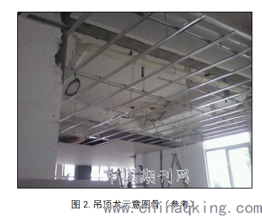 建筑机电设备安装工程管线综合布置技术是一项应用程度较高的管理技术,与各个部分的关系安装都存在关联。管线的综合布置机构通常由总包方及各个专业的负责人组成,总包方是调度中心,对各个部分的管线施工起到协调作用,而管线综合布置机构对整体的工程管线施工具有平衡作用。首先,机构要对各个专业的管线施工进行明确的要求,将各个管线的施工图纸进行汇总;之后,利用CAD软件设计管线的安装方案;最后对管线施工图纸的合理性进行审核,确认其符合布置要求,便可审核通过正式施工。管线综合布置技术在实施期间,工作人员需要注意几个方面的问题:其一,维修空间是否合理,布置管线时应预留出充足的检修空间,注重对装饰吊顶区域的管线布置,满足装饰的高度需求,也要保证吊顶主次龙骨的空间,如图2所示,在龙骨周围要预留的空间,并要对吊顶处的分隔布置加以重视,提升其视觉的体验效果。其二,在综合布置管线时,工作人员要考虑到成本造价的问题,尽量使管线的数量尽可能降低,如使用镀锌钢管取代母线返弯等,都能减少工程的成本花费。其三,在布线中所食用的各项配件设备尺寸应当标注清楚具体的数值,选择尺寸合适的管线配件并且充分考虑管线的保温效果。其四,工作人员可采用公用支架的方法,维持所有管线的平衡状态,充分利用有限的布线空间,达到高效率、低成本的工程要求,并且保证在布线中使用的支架符合各项施工的要求。