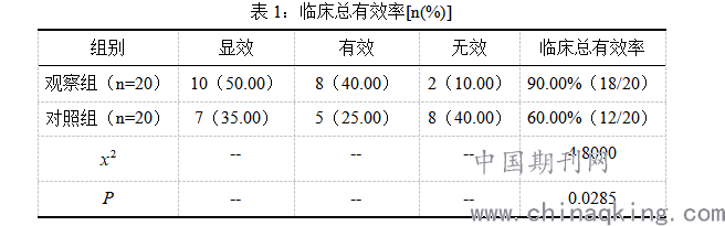 观察组临床总有效率90.00%高于对照组60.00%(P<0.05)。