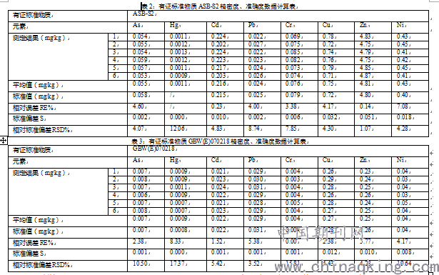 由表1、表2、表3的计算结果可以看出,有证标准物质相对误差(RE)在0.00%—7.08%,相对标准偏差(RSD)在1.07%-19.64%之间,均在允许范围内;经标准物质及空白验证,氯化钙浸提法方法灵敏度高,标准物质及空白样品测试结果稳定,精密度、准确度满足《全国土壤污染状况详查土壤样品分析测试方法技术规定》的要求。