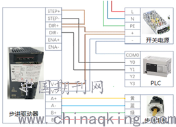 在实训室进行接线类的课程中常常需要学生使用线材来接线,教师对学生的评判标准中常常有学生使用耗材的情况的评判,但是一般情况下教师在管理耗材方面常常无法对学生的使用量做出准确的判断,只能大概的进行记录,如果采用一种自动装置记录学生的领取线路耗材的情况一方面将减轻教师分发线材的工作量,另一方面装置将记录学生线材的使用量,本文探讨的是应用在电工实训室基于PLC开发的线材管理设备。PLC是可编程控制器,它应用在工业控制方方面面,它具有编程简单运行可靠、扩展性好、适用性好的特点。因此利用PLC控制对线材进行分发易于实现,发线系统由3部分组成,第一部分:PLC及触摸屏构成控制部分。第二部分:由伺服电机和驱动器构成的线材输送动力系统。第三部分:以微电机为动力的切割装置。 伺服电机的控制主要采用开环数字控制系统,通常在使用时要搭配伺服驱动器进行控制,而伺服电机驱动器采用了大规模集成电路,具有高抗干扰性及快速的响应性。在使用伺服驱动器时,往往需要较高频率的脉冲,所以就要求所使用的PLC能产生高频率脉冲。三菱公司的FX2N晶体管输出的PLC可以进行100 kHz高速计数功能,完全满足了控制伺服电机的要求,PLC采用三菱FX3U-16MT/ES-A,伺服电机控制器是数控系统及其他相关机械控制领域的关键器件,一般是通过位置控制、速度控制、力矩控制对伺服马达进行控制,实现高精度的传动系统定位。本系统我们采用位置控制。选用三菱公司伺服电机HG-KN43J-S100及配套伺服放大器MR-JE-40A。三菱此款伺服系统具有高响应性,高精度定位,高水平的自动调节,能轻易实现增益设置,且采用自适应振动抑止控制,有位置、速度和转距三种控制功能,完全满足要求。连接图如下所示。