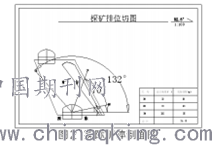 矿山生产勘探为矿石降低混岩率提供主要依据,所以要 先根据设计图纸切出矿体剖面图。首先通过矿山生产勘探进 行探矿二次圈定矿体,为巷道布置中深孔设计提供矿体依 据,进而使中深孔爆后破降低围岩的混入,由于在一些矿山 中存在矿体实际厚度与设计矿体相差很大、倾斜角度较小、 岩石易碎、矿岩赋存复杂、节理发育等限制的出现,因此从 开采方法入手尽可能降低矿山生产勘探中的混岩率。例如在 高山区域大型矿山中(本矿山采用无底柱分段崩落法 [2]),没 有对矿体进行生产探矿,只是对两边矿体进行各一眼探矿。 此方法不能探明矿石实际赋存状态。针对这种情况,需要对 其进行改进,具体方法为 :在进行中深孔工作前,由地质技 术人员根据设计矿体出具探矿设计,测量技术人员根据探矿 设计,现场画出设计探矿的方位角标高及中心机位置。地质 技术人员根据探矿设计对施工人员进行交底 [1]。如图 1 所示: