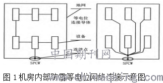 图1机房内部防雷等电位网络连接示意图