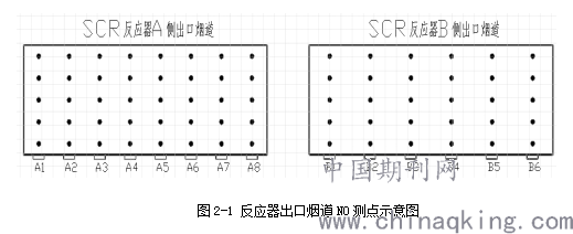 图2-1 反应器出口烟道NO测点示意图