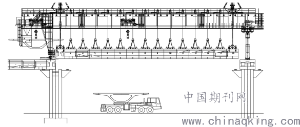 节段预制拼装施工工法,其原理就是将桥梁上部结构划分为若干标准节段及非标准节段,在预制场地匹配预制完成后,在现场用架桥机等专用拼装设备按次序逐块组拼,同时利用剪力键、拼装胶及施加预应力,使之成为整体结构。如图1所示: