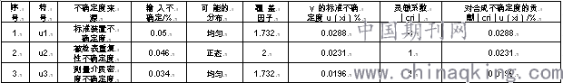 “撬装标准装置”测量不确定度来源:标准装置、被检流量计重复性、测量介质密度(见表1。