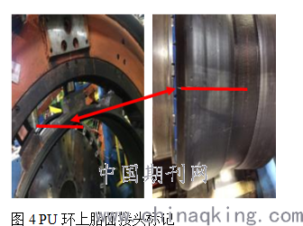 员工把胎体筒放置在PU环上,胎体筒上的胎面接头标记与夹持环上的胎面接头相对应。
