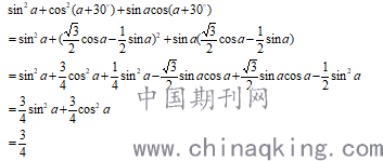 该方法的使用,需要同学们对所给三角式合理构造。善于借助初中所学配方法,对三角式进行整理。此法虽然整理过程繁琐,但是对同学们数学核心素养的形成,有很大的帮助。