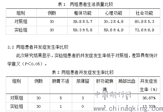 此次研究结果显示,实验组患者的生活质量明显高于对照组,差异具有统计学意义(P<0.05)。