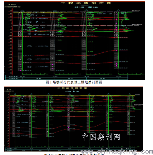 图1塔楼部分代表性工程地质剖面图