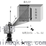 三维激光扫描仪利用激光测距的原理,是可快速复建出被测目标的三维模型及线、面、体等各种图件数据。三维激光扫描仪是无合作目标激光测距仪与角度测量系统组合的自动化快速测量系统,在复杂的现场和空间对被测物体进行快速扫描测量,记录被测物体表面大量的密集的点的三维坐标、反射率和纹理等信息,自动存储并计算,获得点云数据。激光扫描仪本身主要包括激光测距系统和激光扫描系统,同时也集成CCD和仪器内部控制和校正系统等。三维激光扫描仪发射器发出一个激光脉冲信号(图1),经目标物体表面漫反射后,沿几乎相同的路径反向传回到接收器,可以计算激光点P与扫描仪距离S,同步测量每个激光脉冲横向扫描角度观测值α和纵向扫描角度观测值β。三维激光扫描测量可以为仪器自定义坐标系,也可以通过标靶点A、B的坐标匹配到P点上。X轴在横向扫描面内,Y轴在横向扫描面内与X轴垂直,Z轴与横向扫描面垂直。获得P的坐标(图2)。得到目标实体的采样点的集合,称之为“点云”。通过面状的“点云”坐标,即可描述物体面状的形态及其变化特征。
