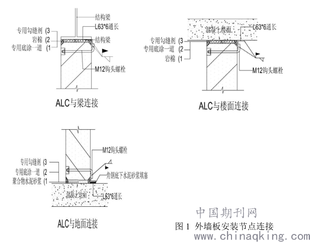 a、ALC 墙板安装使用到的连接件主要包括导向角钢、管板、钩头螺栓。导向角钢需在使用前刷涂防锈油漆,干漆膜厚度不小于 60μm;管板为电镀锌防锈镀锌层厚度不低于 6μm;钩头螺栓采用热侵镀锌,镀锌层厚度不低于 18μm。
