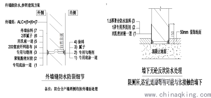 卫生间防水节点做法如下图: