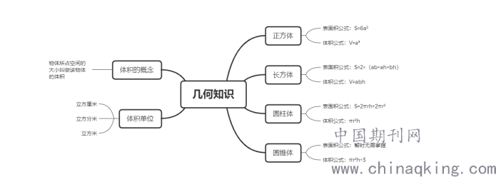 图形与几何是小学数学四大领域之一,但由于该领域知识涉及很多概念、计算公式,主要有:正方体、长方体、圆柱体、圆锥体、体积的概念、体积单位、立体图形表面积计算、立体图形体积计算等,由于知识量较大且部分知识是分成不同年级进行教学的,相当一部分小学生很难对这些知识构建出完整的知识体系,进而导致在考试中因记错、记混知识点而失分。